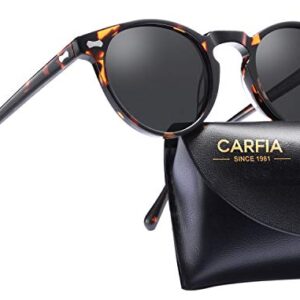 CARFIA Retro Polarized Sunglasses for Men UV400 Protection Handmade Acetate Round Frame CA5288L