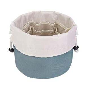 Narwey Barrel Drawstring Checkered Makeup Bag Large Cosmetic Bag Make up Bags Toiletry Bag Travel Bags for Toiletries Organizer for Women Gift for Teen Girls (Greyish Blue)