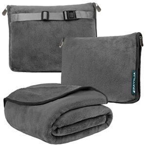 PAVILIA Travel Blanket Pillow, Soft Airplane Blanket 2-in-1 Combo Set, Plane Blanket Compact Packable, Flight Essentials Car Pillow, Travelers Gifts Accessories, Luggage Backpack Strap, 60×43 Gray