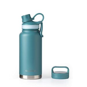 GRANDTIES 2 Lids Sports Stainless Steel Water Bottles â Wide Mouth Vacuum Insulated Reusable Leak Proof BPA-Free Travel Metal Canteen, Thermal Bottles for Men Women Gym (Atlantis Blue 32 oz)