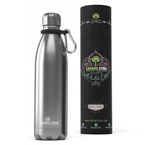 Greens Steel Stainless Steel Water Bottle – 12 oz, Steel | Vacuum Insulated Double Wall with Screw Lid/Leak Proof | Thermal Travel Sports Canteen Coffee Flask