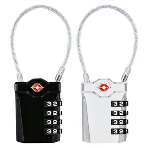 2 Packs TSA Luggage Locks with 14cm Flexible Cable, Diyife 4-Digit Combination Lock Security Padlock Travel Lock for Suitcase Luggage Backpack School or Gym Cabinet, etc. (Black & Sliver)