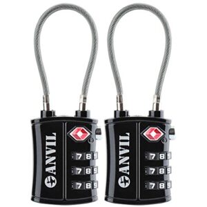 ANVIL TSA Locks for Luggage â TSA Approved Cable Travel Lock with Zinc Alloy Body, 3-Digit Combination Lock for Suitcases, Backpacks, Gun Cases, Zippers