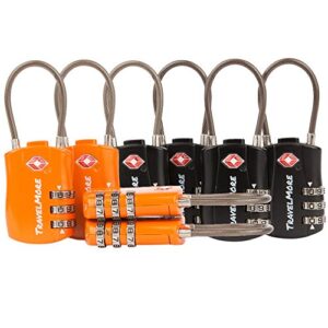 8 Pack TSA Approved Travel Combination Cable Luggage Locks for Suitcases – 4 Black & 4 Orange