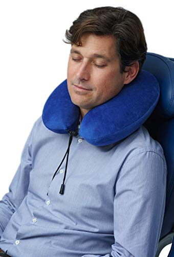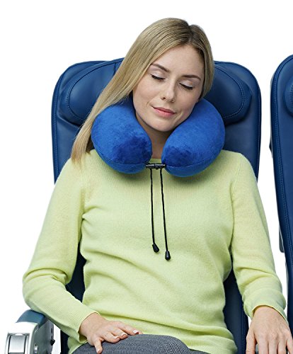 TRAVELREST Travel Essential Neck Pillow Curl – Memory Foam, Washable Micro-Fiber Cover, Soft and Comfortable Head Support for Long Flights, Compact, Attaches to Luggage, Airplanes, Cars, Bus – Blue