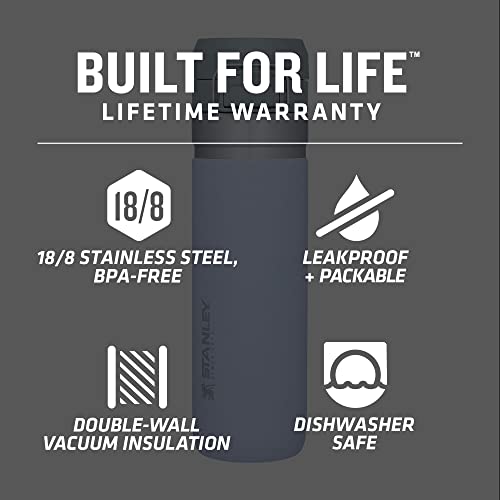 The STANLEY Quick Flip Go water bottle is designed to fit in most cup holders so it can ride along on your daily commute. The double-wall insulation keeps your favorite beverage cold for up to 12 hours, iced for up to 40 hours, or 8 hours hot. Unlike normal mugs, this is manufactured using 18/8 stainless steel, meaning it can take a beating. Everything is made with BPA-free material so your drink stays safe to consume. The trigger action lid makes this travel bottle spill-proof and easy for one-handed use. The lid is designed with a push-button, which opens the mouthpiece on top. You can throw this in your work bag without worrying. This bottle is made with a wide mouth tumbler opening that makes washing by hand a breeze. All components are also dishwasher safe to make clean-up easy for working men and women. ‘Built for life’.